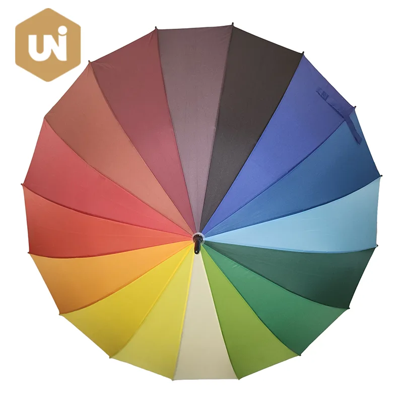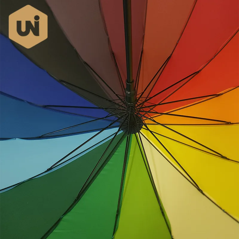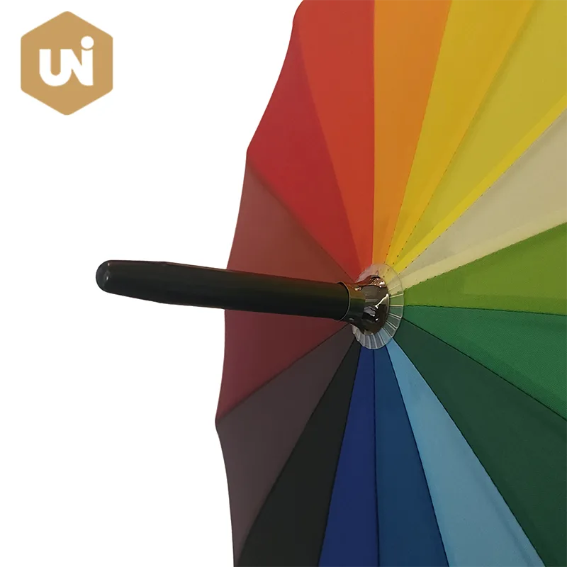 Paraguas automático Rainbow Adulto Stick Marco y eje de fibra de vidrio, mango de goma, tela sólida pongee 210T resistente al agua. |