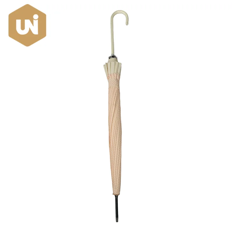 Paraguas de palo para adultos con borde especial Estructura y eje de fibra de vidrio, mango de goma, tela sólida pongee resistente al agua. |