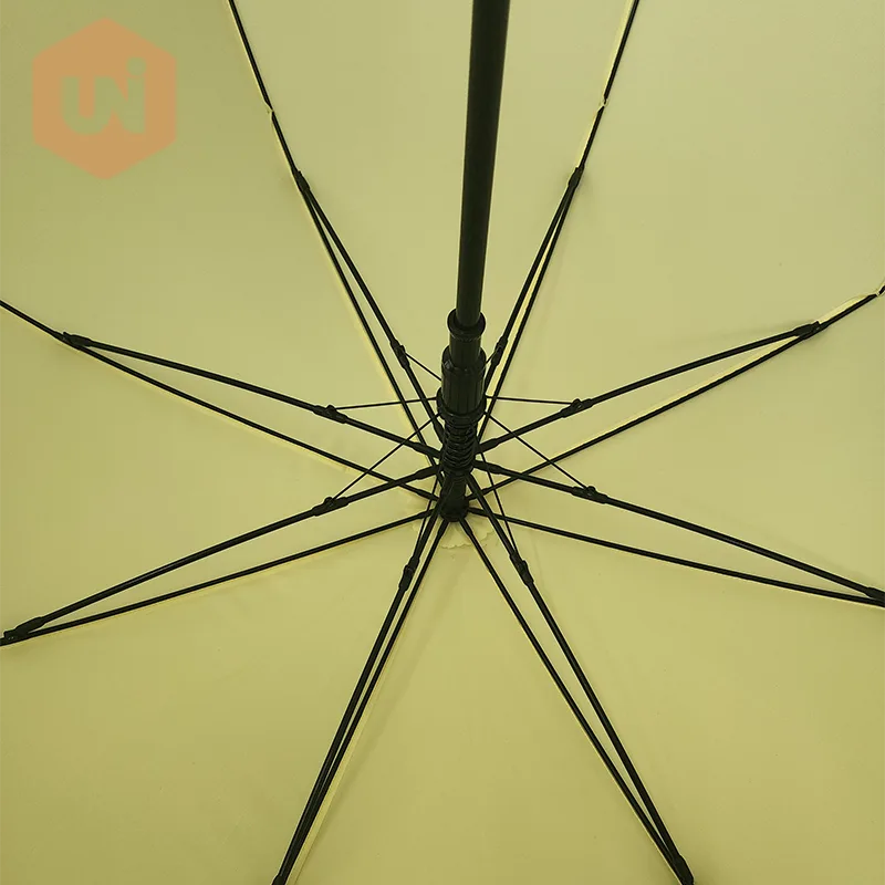 Paraguas de golf abierto automático de madera Estructura estriada de metal y eje de metal, mango de madera recto, pongee con color sólido |
